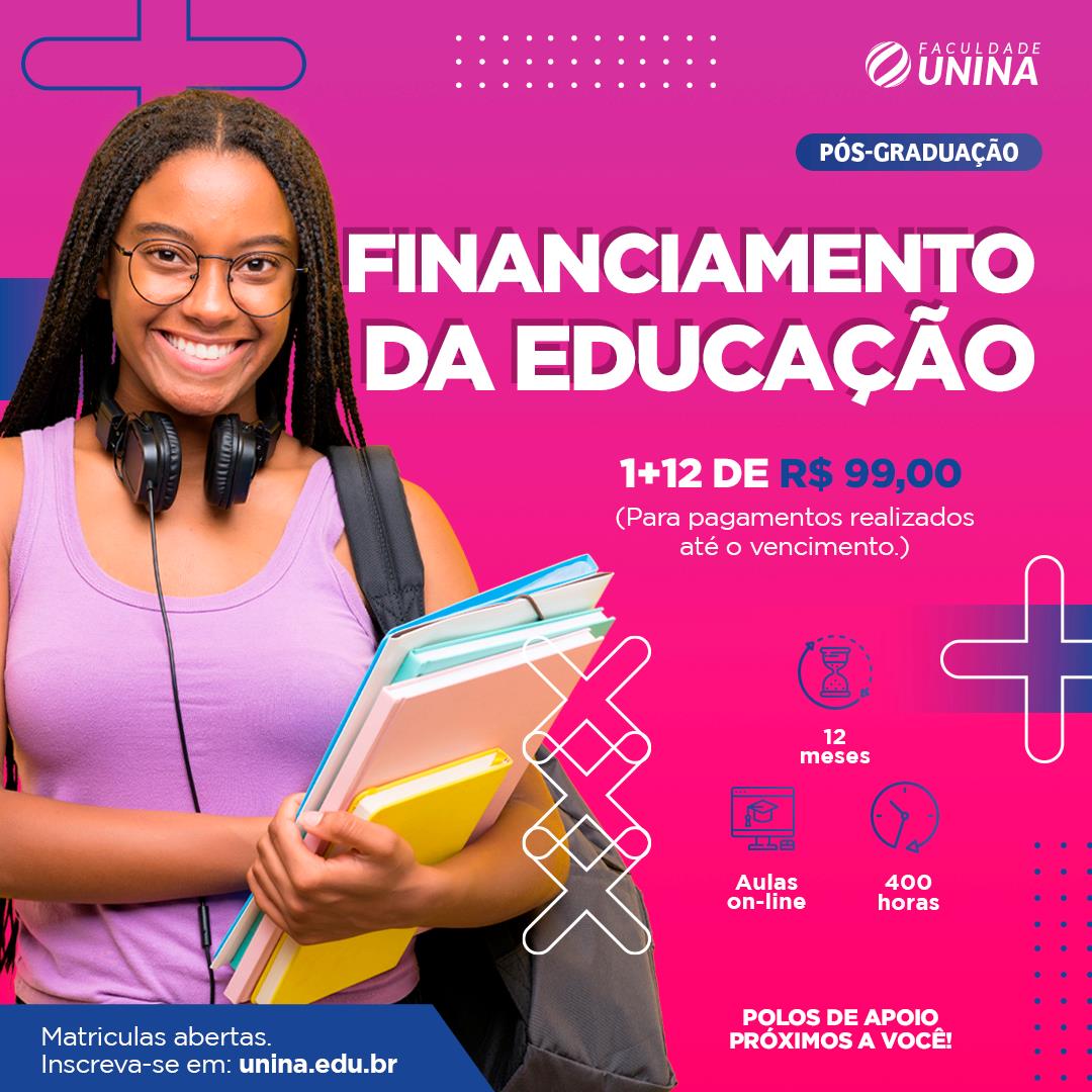 O curso de pós-graduação em Financiamento da Educação visa aprofundar os conhecimentos técnicos e teóricos justificados pela necessidade de analisar de forma teórico-prática o financiamento da Educação no cenário contemporâneo em suas vertentes.Investigar e apresentar de forma aprofundada o financiamento da Educação, através do embasamento teórico e prático das legislações e das ações previstas no ordenamento educacional e sua abrangência.